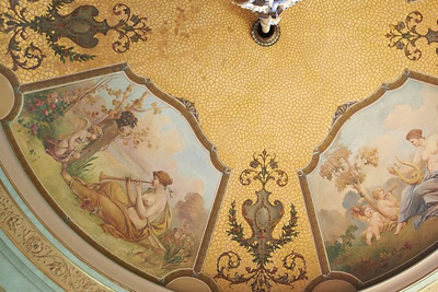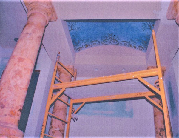 For those clients who brought me into the mix before their house plans were finalized, it was a huge construction cost-savings to them and resulted in the most professional impact to their project. Too many decisions to even list here are made at that time involving factors pertaining to areas possibly receiving artwork. Please feel free to contact me for more information about this very important stage. Although the artist comes on the job site after painters have base-coated, by necessity at times the large and high scaffold areas are worked into the construction sequence, before other materials are installed. General projects steps and pricing Step One: The initial portfolio presentation includes viewing the house plans or job site. The exchange of ideas allows proposed treatments along with pricing. There is no charge for this presentation, unless long-distance travel fees would apply. Step Two: The proposed areas are drawn up with priced design options. The artist does recover design fees for this drawing time. This fee is ordinarily removed from a resulting contract, with specifics explained before charges are incurred. Step Three: Contracts include all costs and work descriptions, except scaffold costs. There is no sales tax. The prices quoted are based upon past experience of height, dimensions and subject matter. Additionally, substantial discounts are given in ratio to multiple areas and overall cost of the contract. |